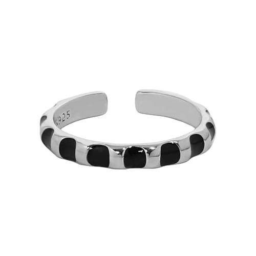Black And Silver Design Ring er et stilfuldt valg til enhver lejlighed. Dette smykke kombinerer elegance med moderne design og passer perfekt til både hverdag og fest.